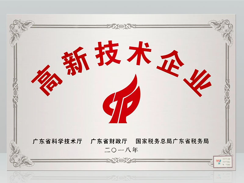 獲得國家高新技術企業稱號;